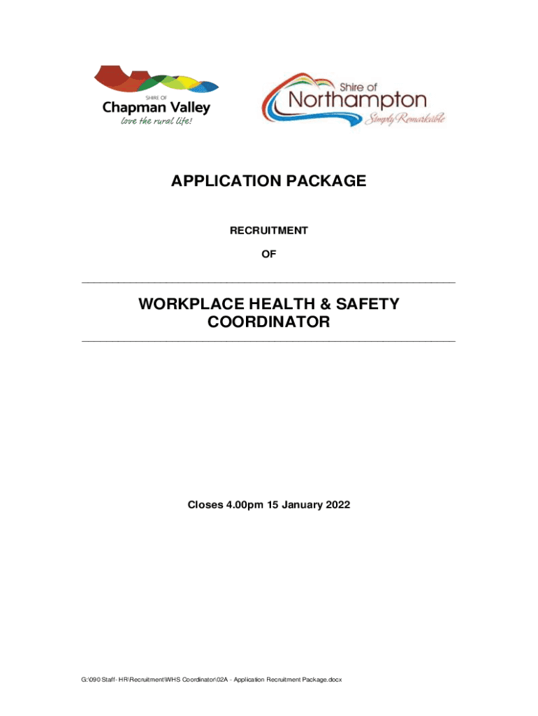 APPLICATION PACKAGE RECRUITMENT OF ___WORKPLACE HEALTH & SAFETY COORDINATOR ___Closes 4.00pm 15 January 2022G:090 Staff HRRecruitmentWHS Coordinator02A Application Recruitment Package.docxWORKPLACE