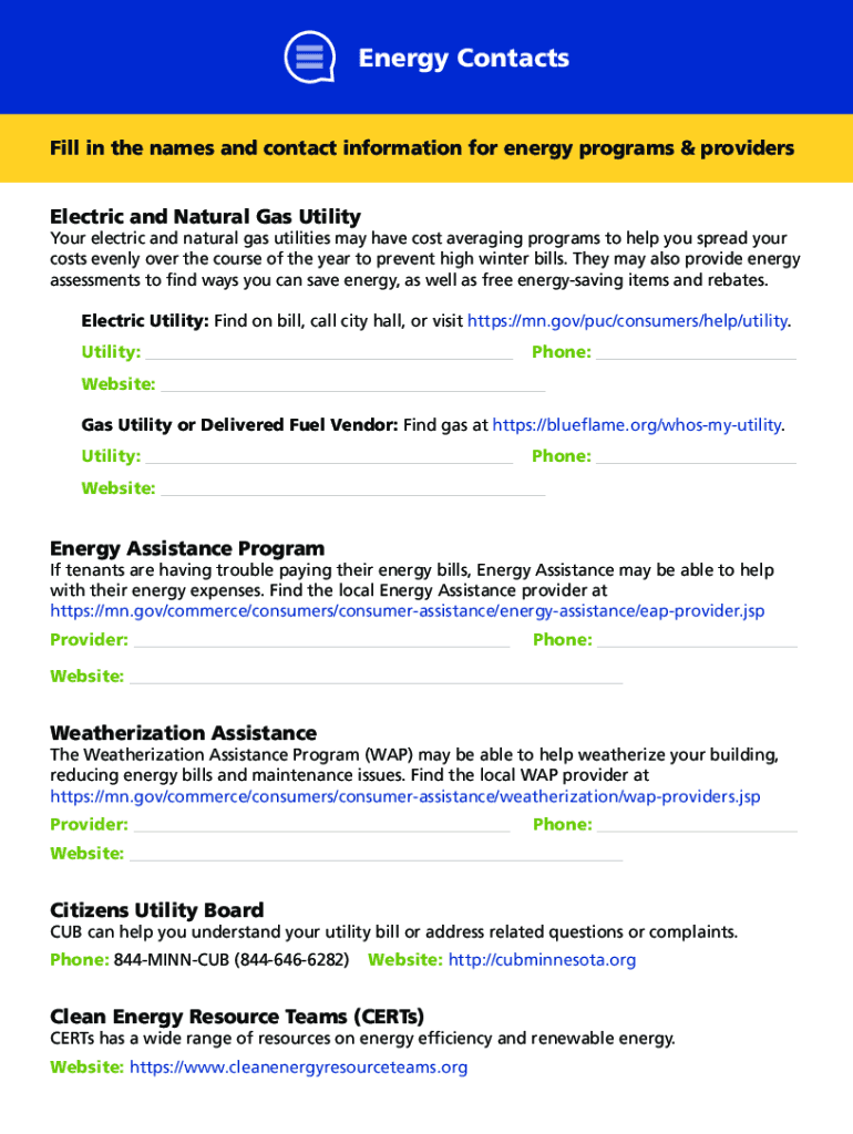 To fill out energy for landlords, landlords need to provide information on the energy usage and efficiency of the rental property.
