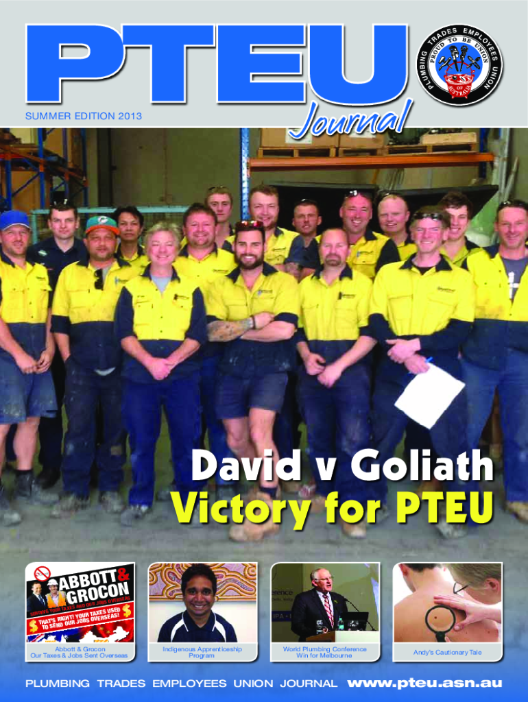 JournalSUMMER EDITION 2013David v Goliath Victory for PTE & ABBOTT N. GROW VERSE JOBS O ND OUR A S E X TA ED G YOUR XES USS! SENDING OUR TAA YO VERSE RIGHT! THAT'S ND OUR JOBS TO SE Abbott & Grown