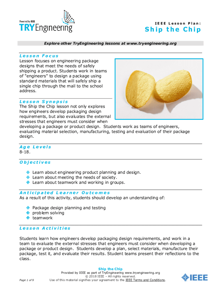 IEEE Lesson Plan:Ship the Chip Explore other Reengineering lessons at www.tryengineering.orgLesson Focus Lesson focuses on engineering package designs that meet the needs of safely shipping a product.