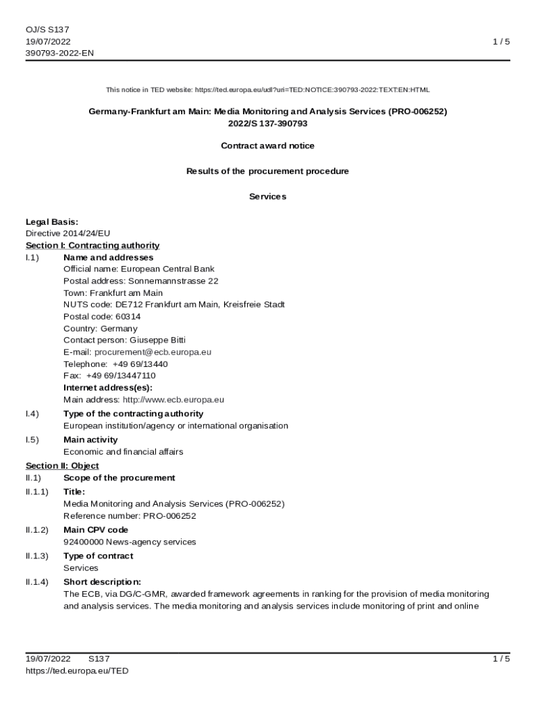 Get the free Services - 252201-2022 - TED Tenders Electronic Daily