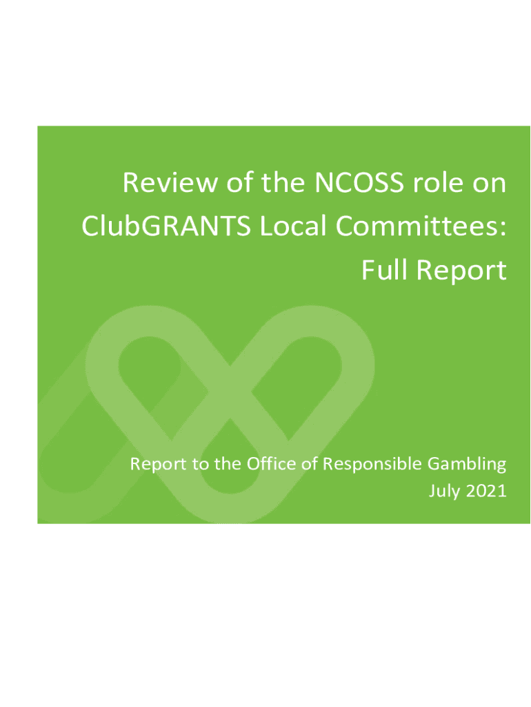 Review of the NC OSS role on Celebrants Local Committees: Full ReportReport to the Office of Responsible Gambling July 2021About NC OSS The NSW Council of Social Service (NC OSS) is the peak body