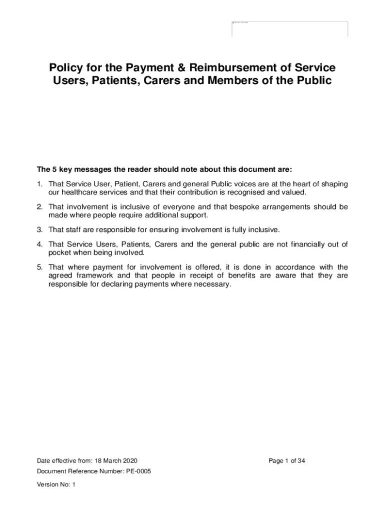 Get the free PE-0005 - Policy for the payment and reimbursement of Service Users, Patients, Carer...