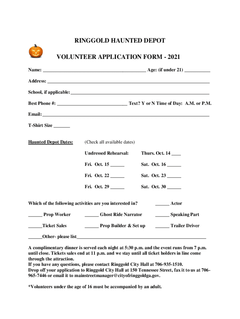 Get the free RINGGOLD HAUNTED DEPOT VOLUNTEER APPLICATION FORM ...