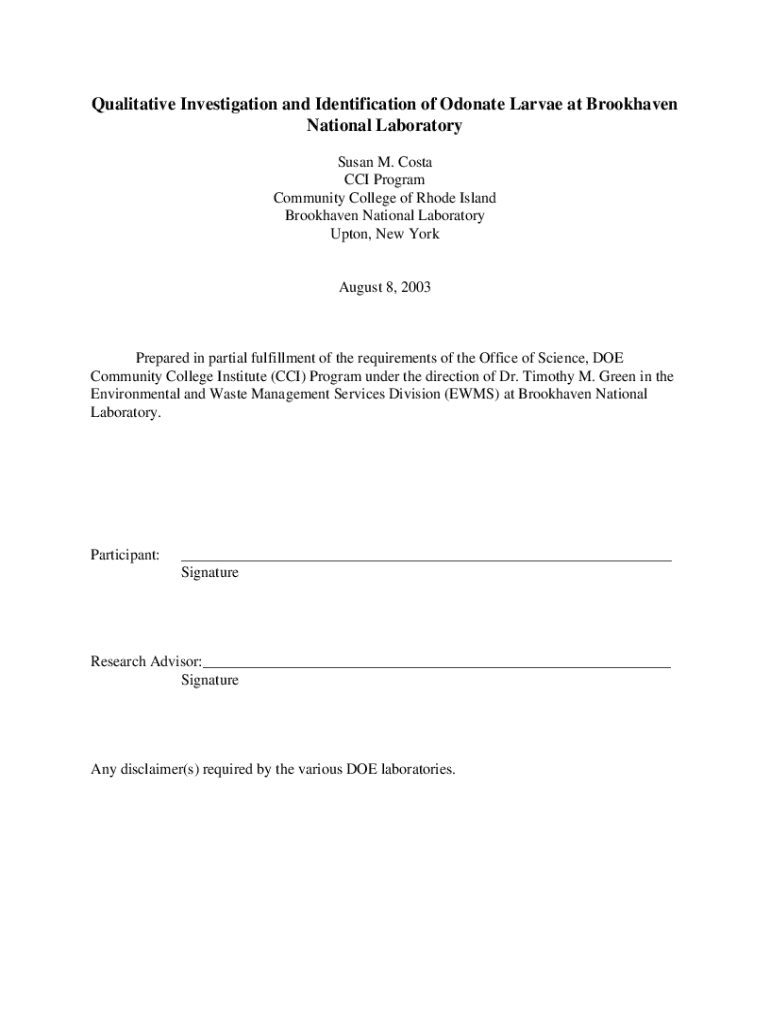 Qualitative Investigation and Identification of Donate Larvae at Brookhaven National Laboratory Susan M. Costa CCI Program Community College of Rhode Island Brookhaven National Laboratory Upton, New
