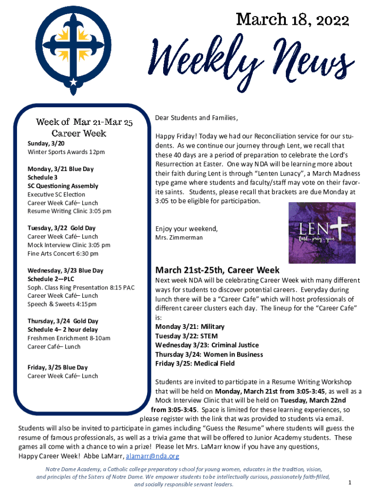 Dear Students and Families, Sunday, 3/20 Winter Sports Awards 12pm Monday, 3/21 Blue Day Schedule 3 SC Questioning Assembly Executive SC Election Career Week CAF Lunch Resume Writing Clinic 3:05 happy