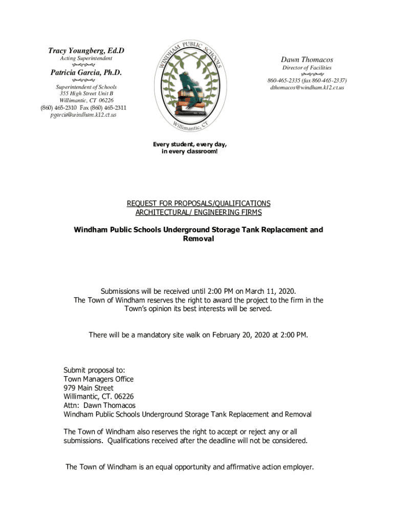 Tracy Young berg, Ed. D Acting Superintendent Dawn Thomas Director of Facilities Patricia Garcia, Ph.D. Superintendent of Schools 355 High Street Unit B Willimantic, CT 06226 (860) 4652310 Fax (860)