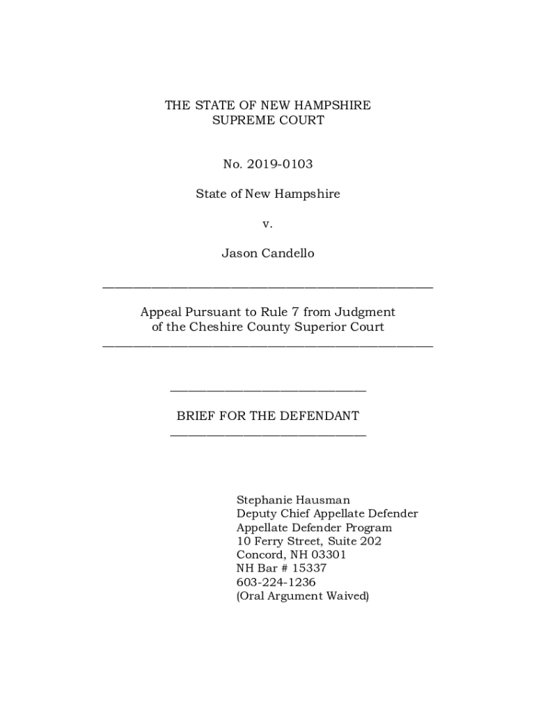 THE STATE OF NEW HAMPSHIRE SUPREME COURT No. 20190103 State of New Hampshire v. Jason Candela ___ Appeal Pursuant to Rule 7 from Judgment of the Cheshire County Superior Court ___ ___ BRIEF FOR THE