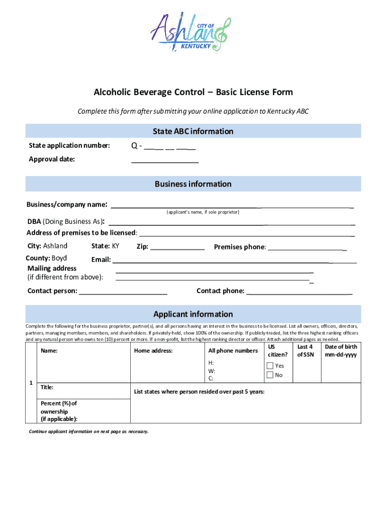 Download the Ashland Alcoholic Beverage Control form from the official website.