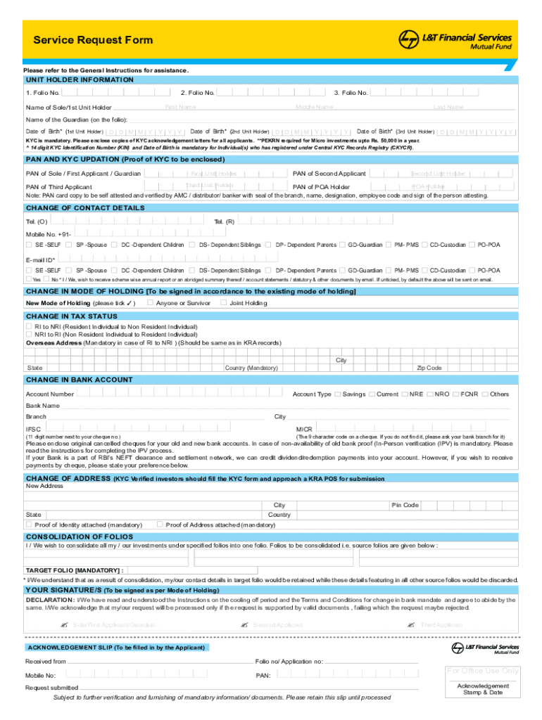 Service Request Form Please refer to the General Instructions for assistance. UNIT HOLDER INFORMATION 1. Folio No.2. Folio No.3. Folio No. First Namesake of Sole/1st Unit HolderMiddle Nameless Namesake