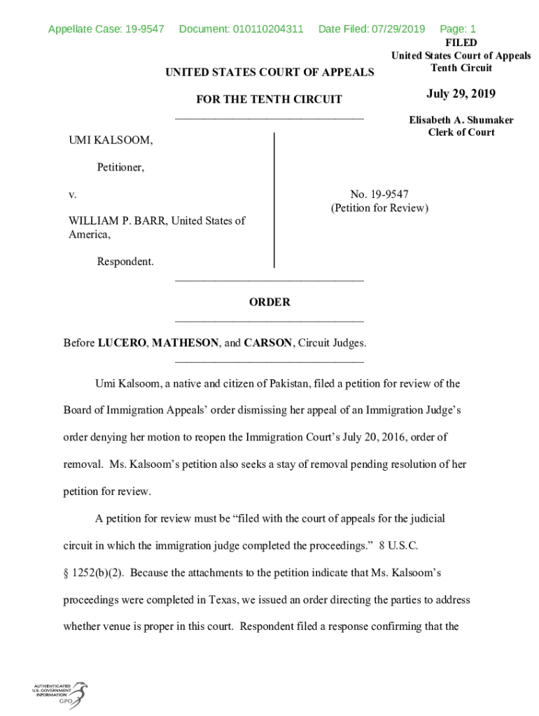 Appellate Case: 199547Document: 010110204311Date Filed: 07/29/2019UNITED STATES COURT OF APPEALS
