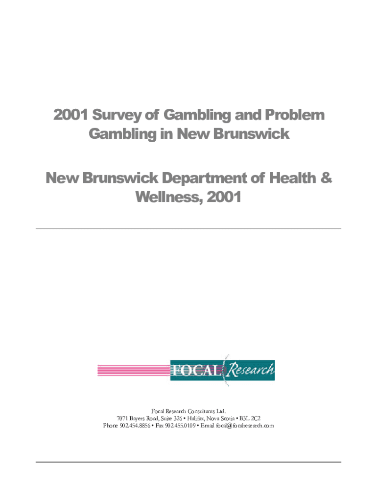 2001 Survey of Gambling and Problem Gambling in New Brunswick Department of Health & Wellness, 2001Focal Research Consultants Ltd. 7071 Bayer's Road, Suite 326 Halifax, Nova Scotia B3L 2C2 Phone 902.454.8856
