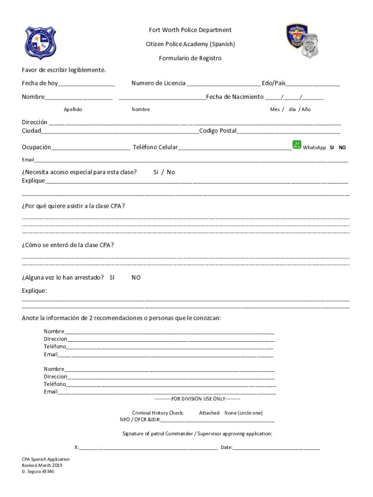 How to fill out policefortworthtexasgovget-involvedcitizenscitizens police academy