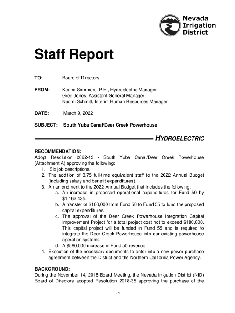 Anyone who needs to submit a staff report to the NID Waterspecial District would require the nidwaterspecialdistrictorgfiles9ac6d0107staff report - nidwaterspecialdistrictorg. This may include employees, consultants, or individuals involved in projects or activities related to the NID Waterspecial District.