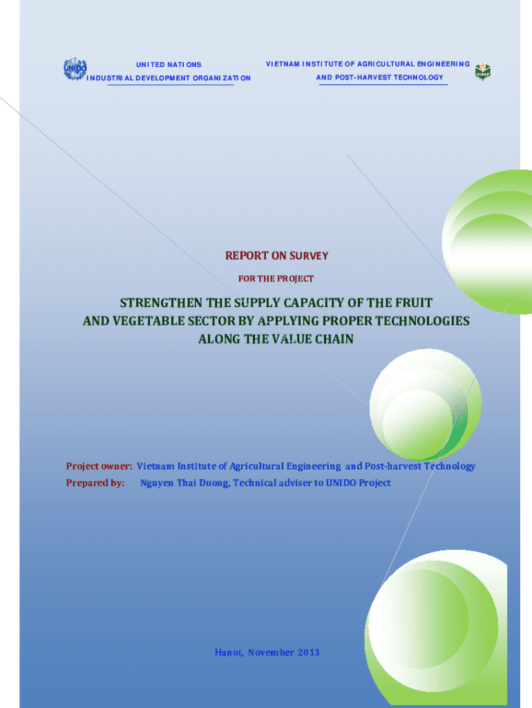 VIETNAM INSTITUTE OF AGRICULTURAL ENGINEERINGUNITED NATIONS AND POSTHARVEST TECHNOLOGYINDUSTRIAL DEVELOPMENT ORGANIZATIONREPORTONSURVEY FORTHEPROJECTSTRENGTHENTHESUPPLYCAPACITYOFTHEFRUIT ANDVEGETABLESECTORBYAPPLYINGPROPERTECHNOLOGIES