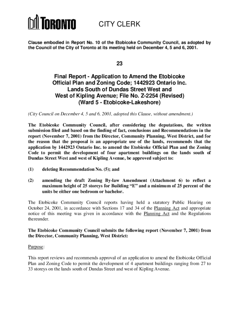 Get the free www.toronto.calegdocs2001Final Report - Application to Amend the Etobicoke Official