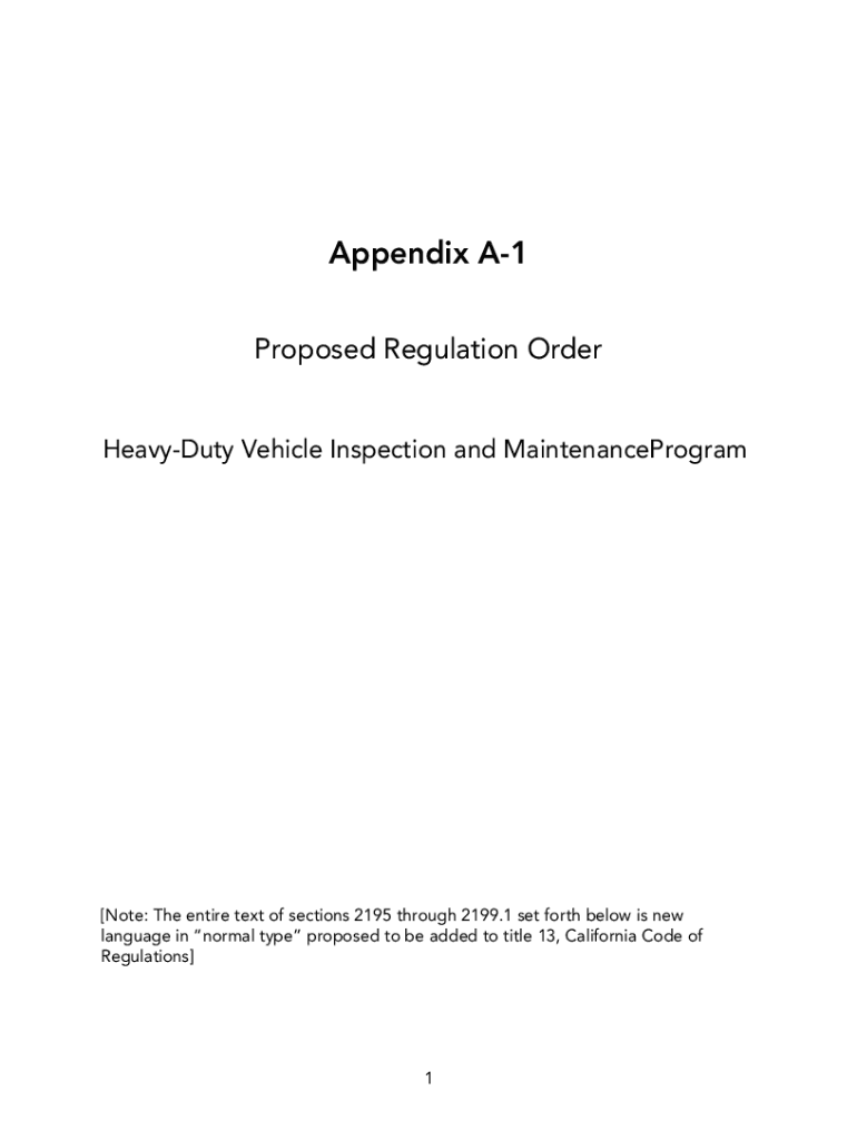 Appendix A1 Proposed Regulation OrderHeavyDuty Vehicle Inspection and Maintenance Program[Note: The entire text of sections 2195 through 2199.1 set forth below is new language in normal type proposed