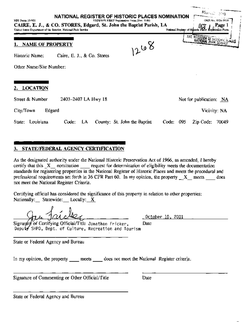 NFS Form 10900pUSDI/NPS CNRHP Registration Form (Rev. 886)care, E. J., & CO. STORES, Edward, St. John the Baptist Parish, LA