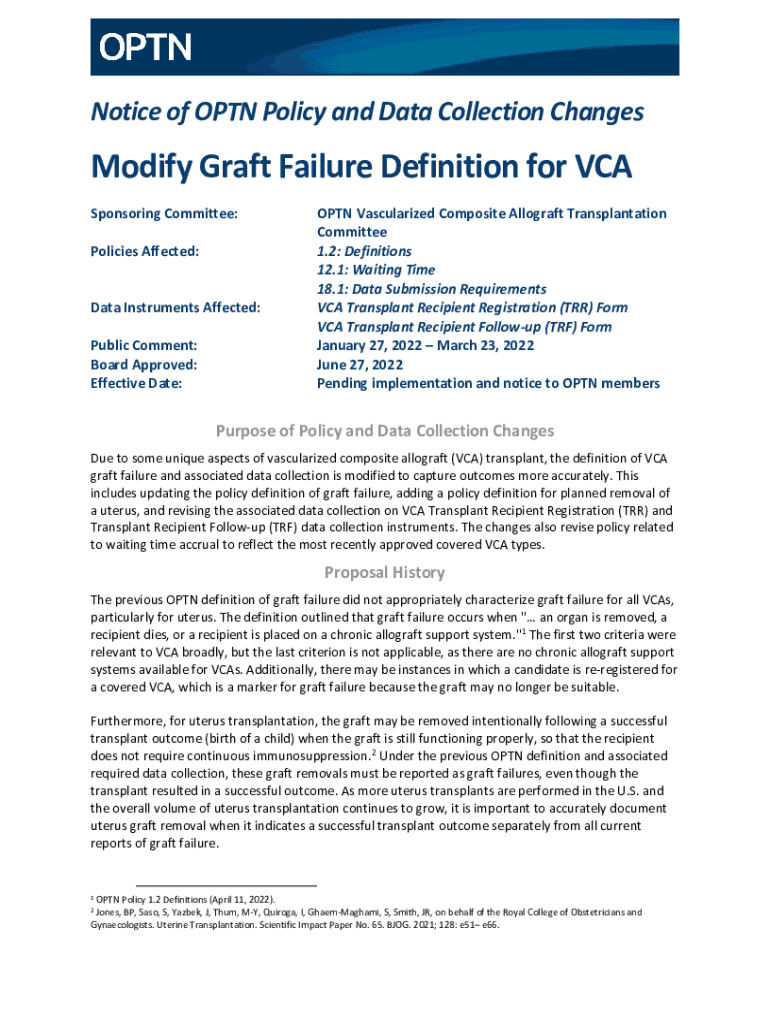 Get the free Notice of OPTN Policy and Data Collection Changes - Modify Graft ... - optn transpla...