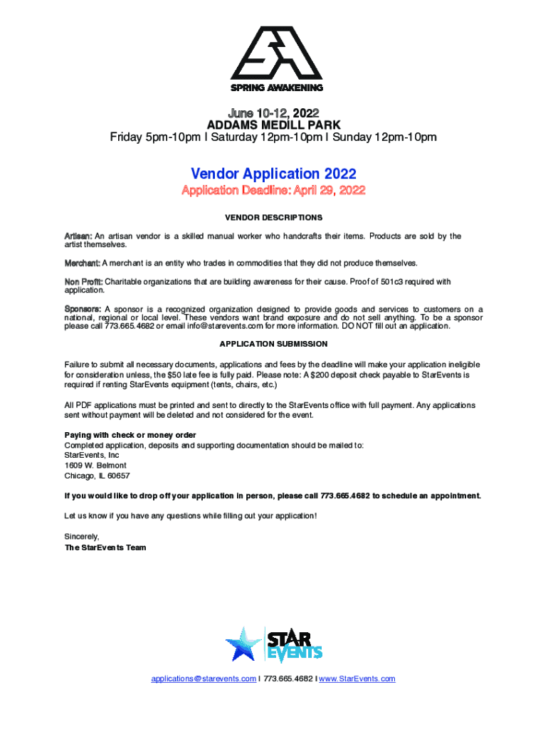 June 1012, 2022 ADDAMS MEDIAL PARK Friday 5pm10pm | Saturday 12pm10pm | Sunday 12pm10pmVendor Application 2022Application Deadline: April 29, 2022, VENDOR DESCRIPTIONS Artisan: An artisan vendor is
