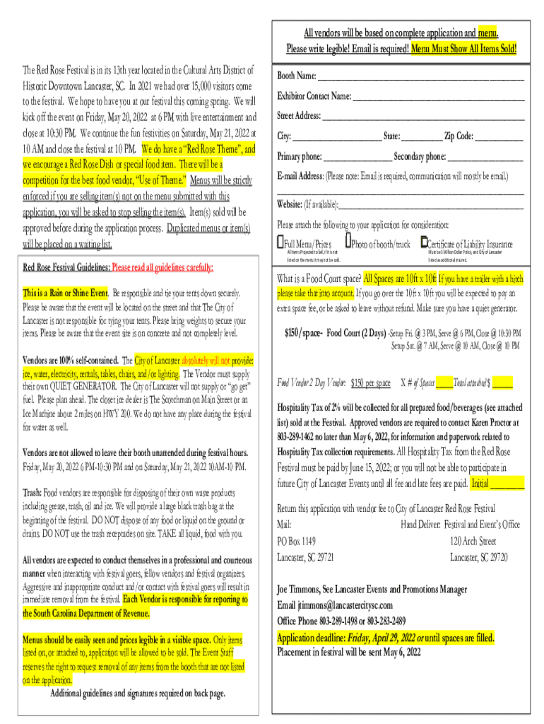 Get the free www.lancastercitysc.com wp-content uploadsFood Vendor Red Rose Festival Application ...