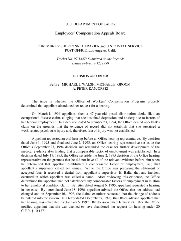 Get the free 97-1447: SHERLYNN D. FRAZIER and U.S. POSTAL SERV...