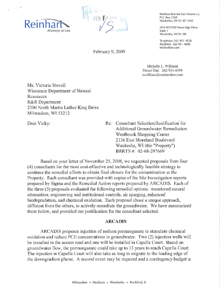 Reinhart Border Van Degree s.c. P.O. Box 2265 Waukesha, WI 531872265Rei N16 W23250 Stone ridge Drive Suite 1 Waukesha, WI 53188Attorneys at Telephone: 2629514500 Facsimile: 2629514690 Reinhart. Commentary