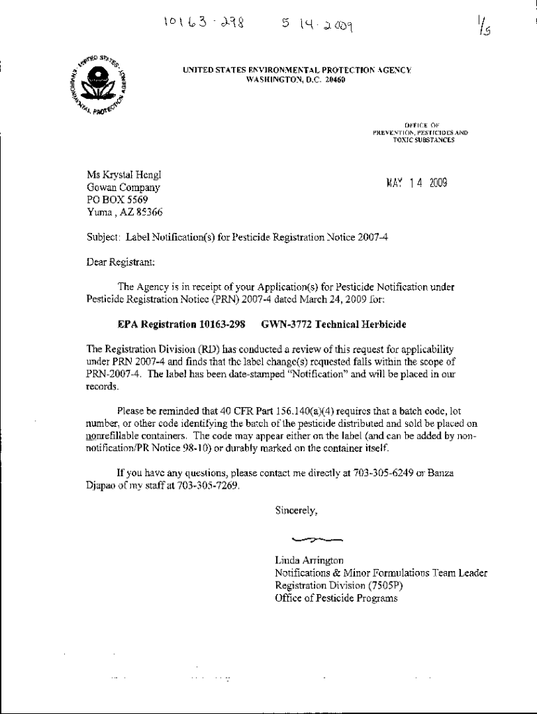 Get the free U.S. EPA, Pesticides, Label, GWN-3772 TECHNICAL, 5/14/2009. Pesticide Product Label,...