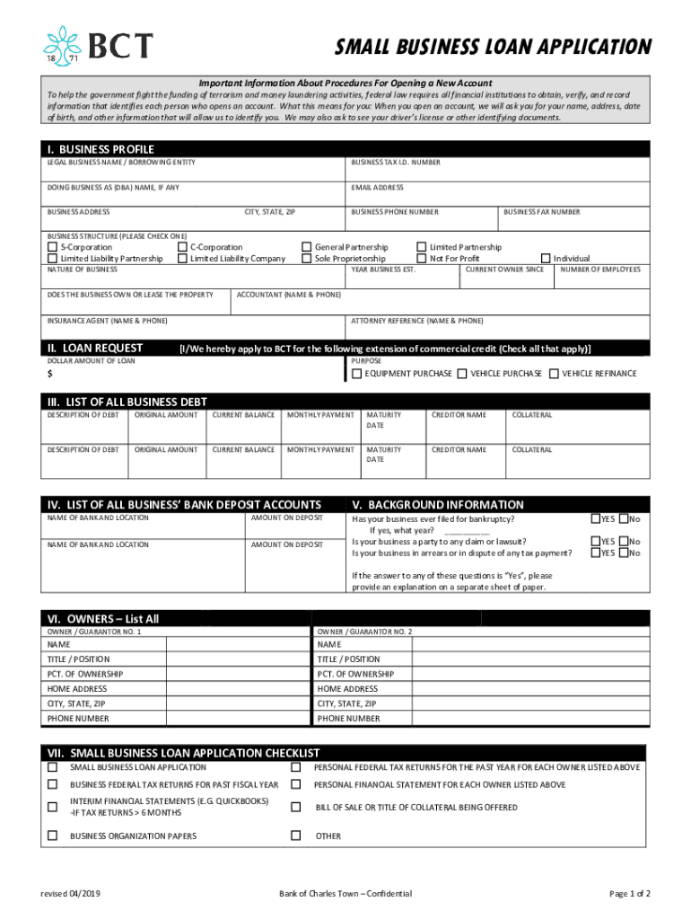 SMALL BUSINESS LOAN APPLICATION Important Information About Procedures For Opening a New Account help the government fight the funding of terrorism and money laundering activities, federal law requires