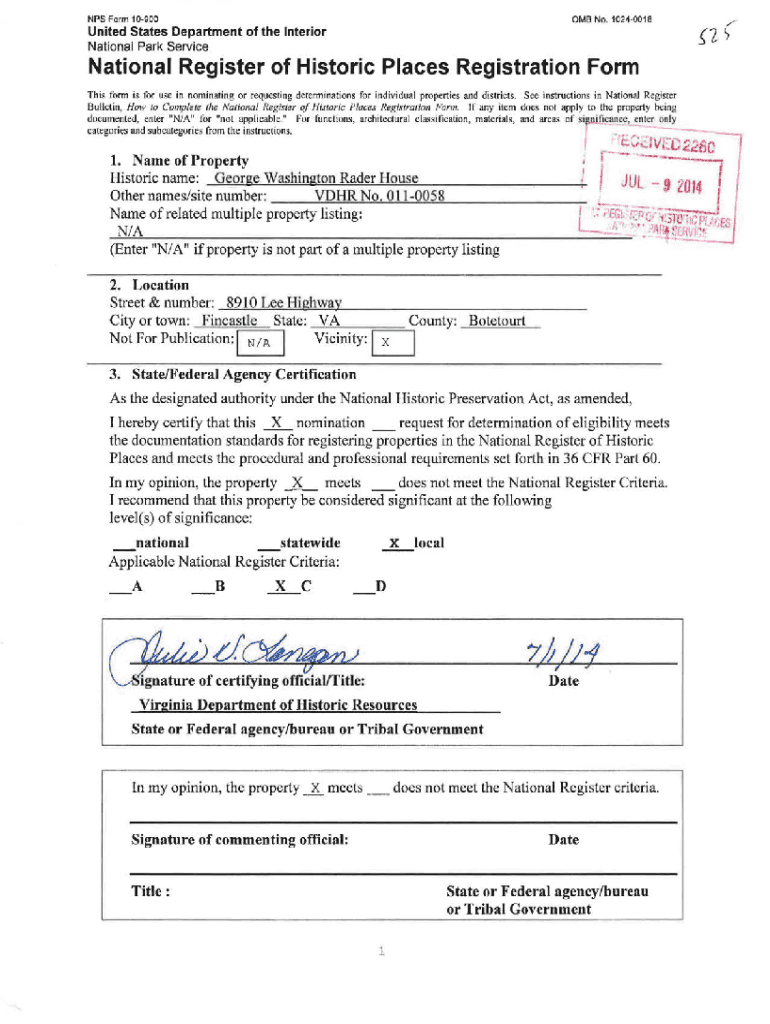 NPS Form 109000 MB No. 10240018United States Department of the Interior National Park ServiceNational Register of Historic Places Registration Form This form is for use in nominating or requesting