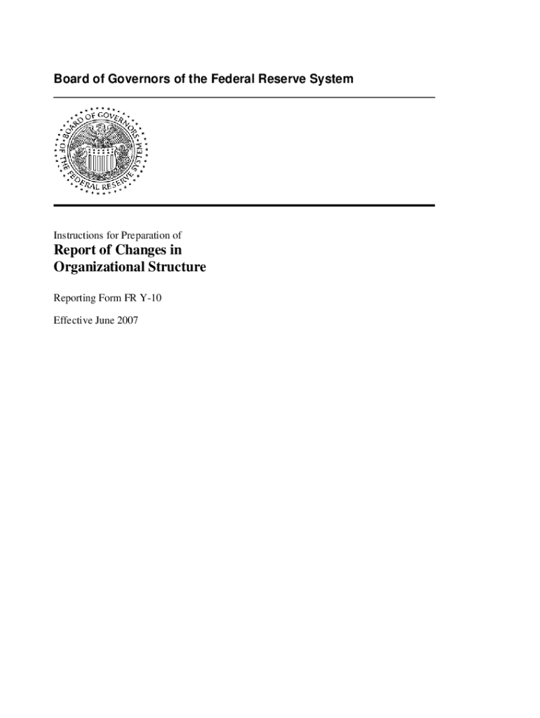Board of Governors of the Federal Reserve SystemInstructions for Preparation report of Changes in Organizational Structure Reporting Form FR Y10 Effective June 2007Instructions for the Report of Changes