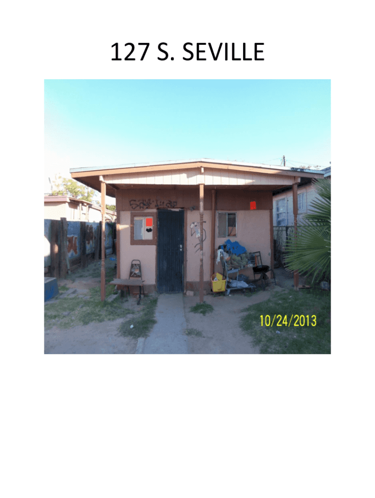 127 S. SEVILLEBUILDING AND STANDARDS BOARD AGENDA ITEM #5 FOR WEDNESDAY, OCTOBER 30, 2013, ENVIRONMENTAL SERVICES DEPARTMENT CODE COMPLIANCE DIVISION MEMORANDUM October 1, 2013, TO:The Honorable Chairman