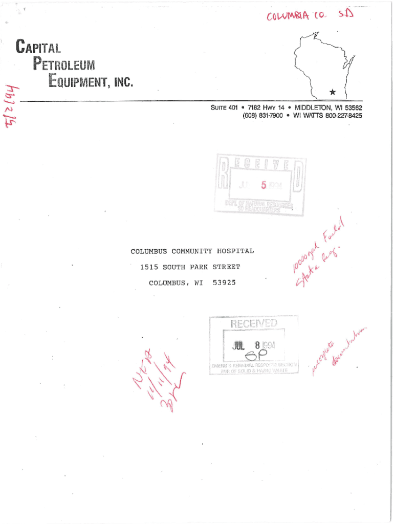 CAPITAL PETROLEUM EQUIPMENT, INC. ::r* SUITE 401 7182 HWY 14 MIDDLETON, WI 53562 N (608) 8317900 WI WATTS 80022784251P5COLUMBUS COMMUNITY HOSPITAL 1515 SOUTH PARK STREET COLUMBUS, WI53925capital petroleum
