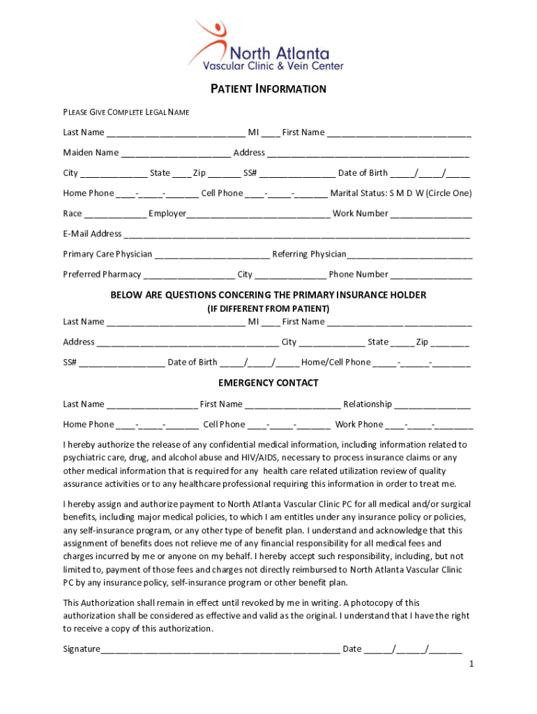 PATIENT INFORMATION PLEASE GIVE COMPLETE LEGAL NAME Last Name ___ MI ___ First Name ___ Maiden Name ___ Address ___ City ___ State ___ Zip ___ SS# ___ Date of Birth ___/___/___ Home Phone _________