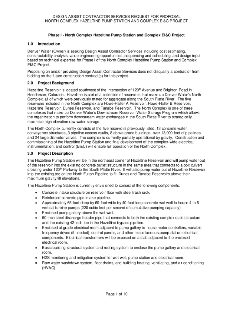 Get the free Design Assist Contractor Services Request for Proposal North Complex Hazeltine Pump ...