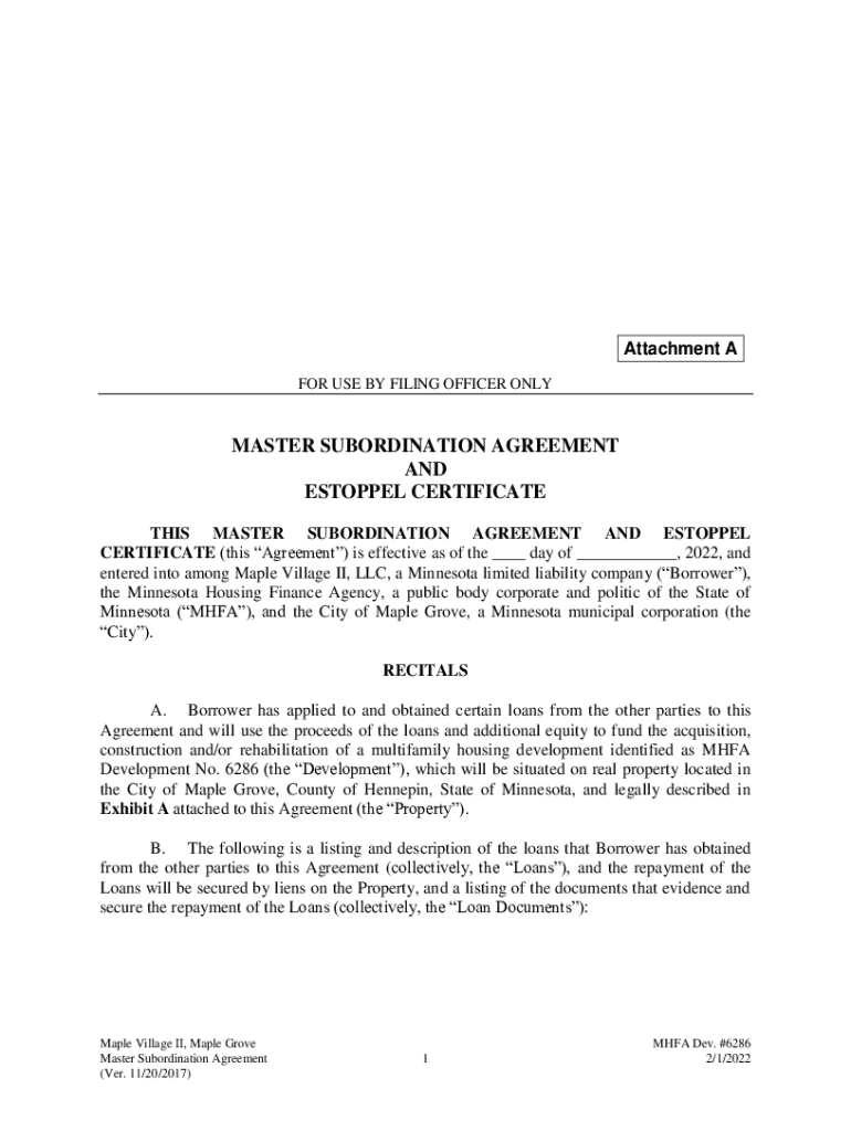 Get the free www.maplegrovemn.govAgendaCenterViewFileMASTER SUBORDINATION AGREEMENT AND ESTOPPEL ...