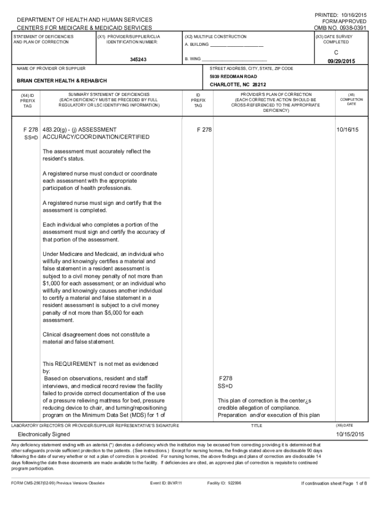 PRINTED: 10/16/2015 FORM APPROVEDDEPARTMENT OF HEALTH AND HUMAN SERVICES CENTERS FOR MEDICARE & MEDICAID SERVICES STATEMENT OF DEFICIENCIES AND PLAN OF CORRECTION(X1) PROVIDER/SUPPLIER/CIA IDENTIFICATION