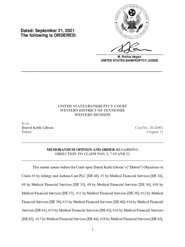 Dated: September 21, 2021, The following is ORDERED:___ M. Ruthie Pagan UNITED STATES BANKRUPTCY JUDGE___UNITED STATES BANKRUPTCY COURT WESTERN DISTRICT OF TENNESSEE WESTERN DIVISION In re: Darrel