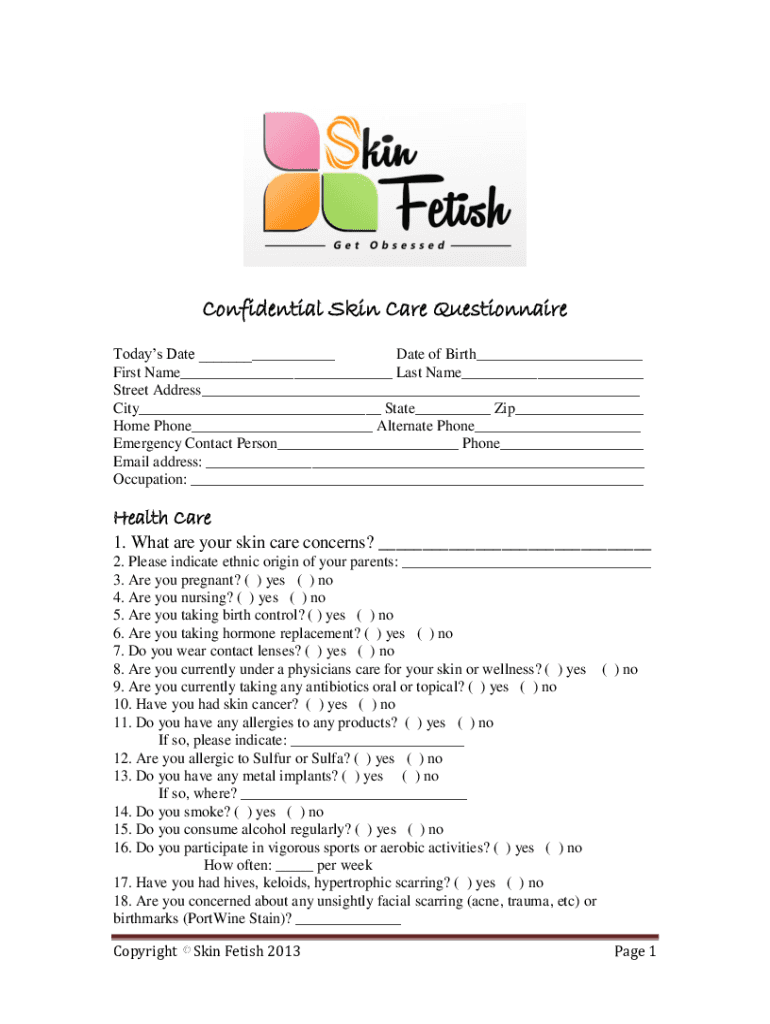To fill out the questionnaire, individuals should provide accurate personal information, detail their medical history, and answer specific questions regarding their skin health as prompted by the form.