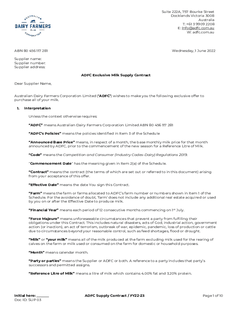 Suite 222A, 757 Burke Street Docklands Victoria 3008 Australia T: +61 3 9909 2208 E: Info@adfc.com.au W: adfc.com.again 80 456 117 281Wednesday, 1 June 2022Supplier name: Supplier number: Supplier