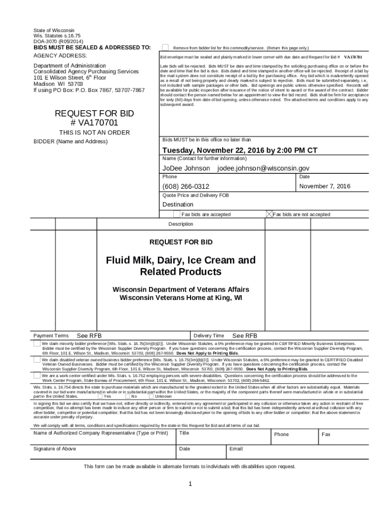 Request fo rBid - Wisconsin word template: frequently asked questions