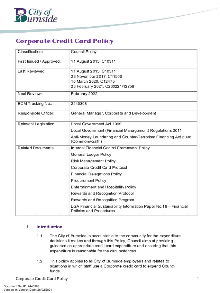 Get the free ECM2440308v9Corporate Credit Card Policy. Corporate Credit Card Policy