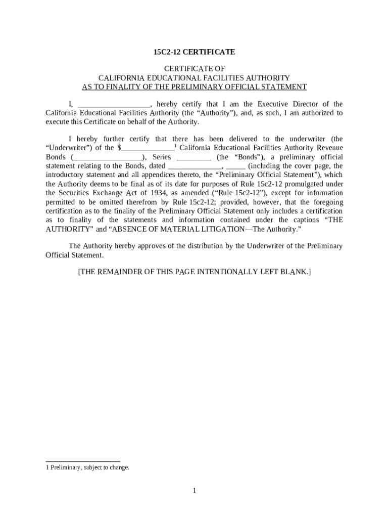Instructions for the form www.treasurer.ca.govchffatemplates15c2-12 Certificate - California State Treasurer