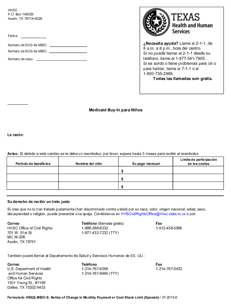 Get the free Notice of Change in Monthly Payment or Cost Share Limit (Medicaid Buy-In for Childre...