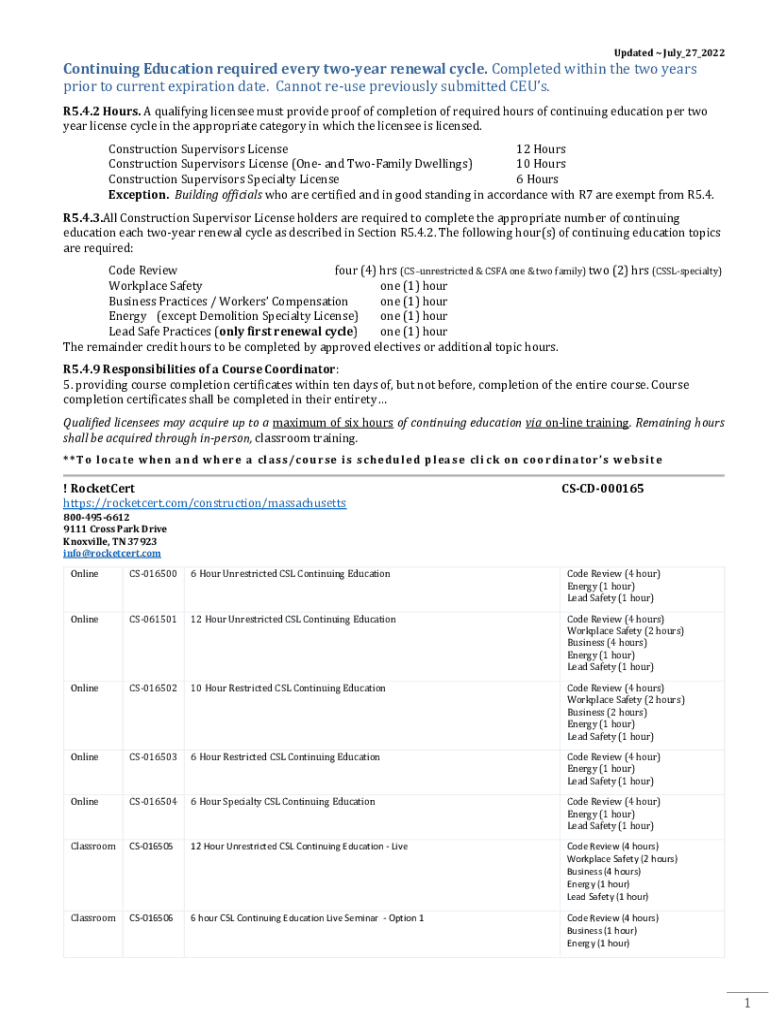 Updated July_27_2022Continuing Education required every two year renewal cycle. Completed within the two years prior to current expiration date. Cannot reuse previously submitted Zeus. R5.4.2 Hours.
