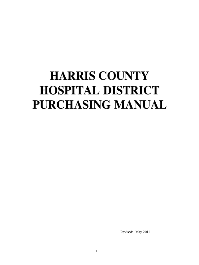 HARRIS COUNTY HOSPITAL DISTRICT PURCHASING MANUALRevised: May 20111Forward On January 12, 1993, Harris County Commissioners Court ordered that the purchasing and materials management functions of