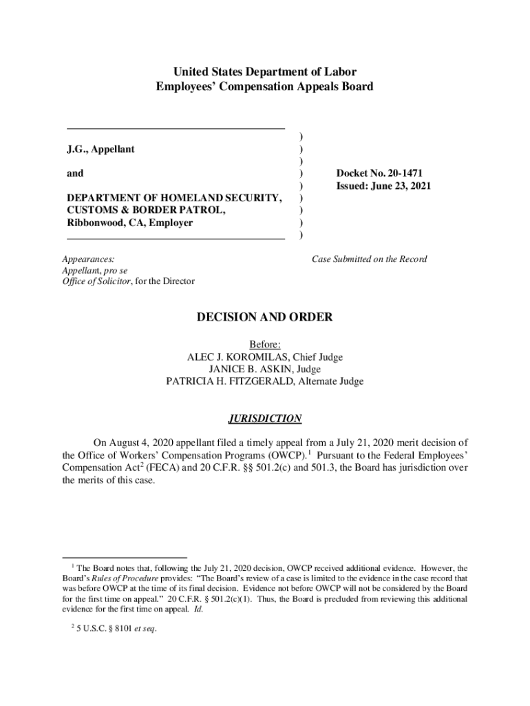 Get the free 20-1471: J.G. and DEPARTMENT OF HOMELAND SECURITY...