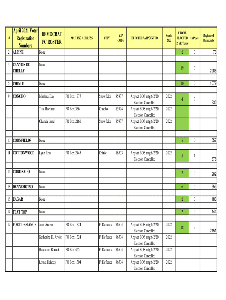 Get the free April 2021 Voter Registration Numbers DEMOCRAT PC ROSTER