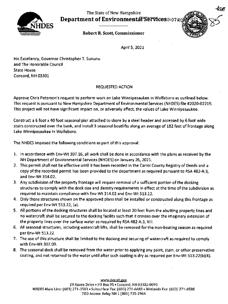 The State of New Hampshire_Department of Environment!\'\'Services:07 r(NODES Robert R. Scott, Commissioner Aprils, 2021His Excellency, Governor Christopher T. Sunny and The Honorable Council State