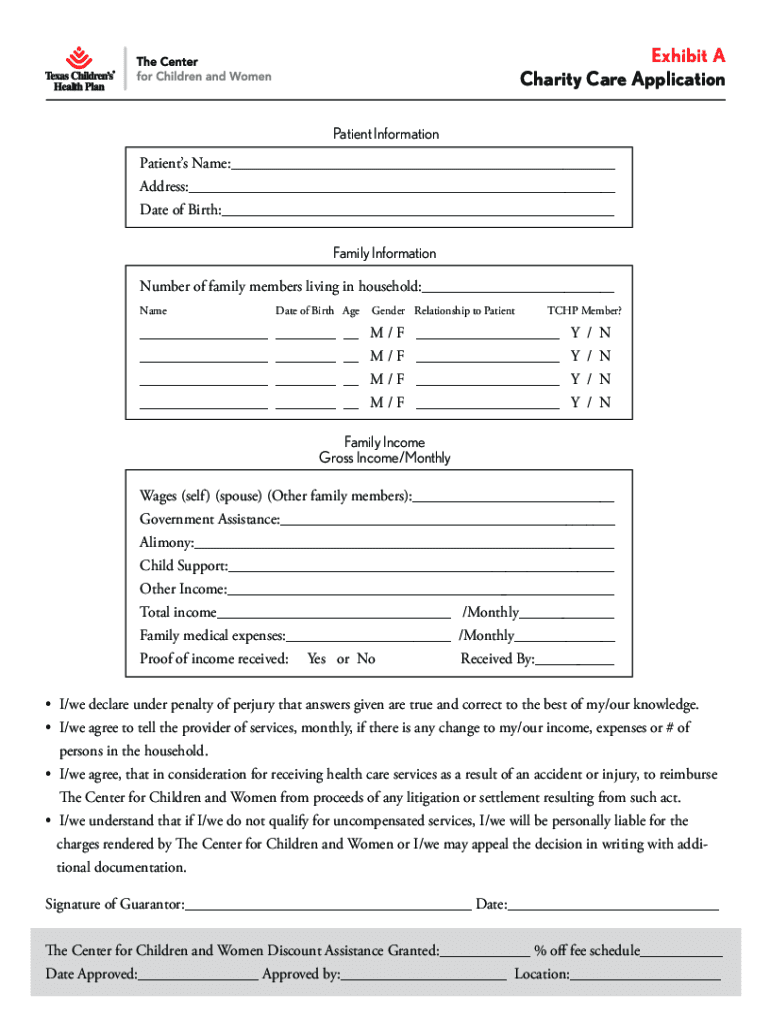 Exhibit A Charity Care Application Patient Information Patients Name:___Address:___Date of Birth:___Family Information Number of family members living in household:___ Name Date of Birth AgeGenderRelationship